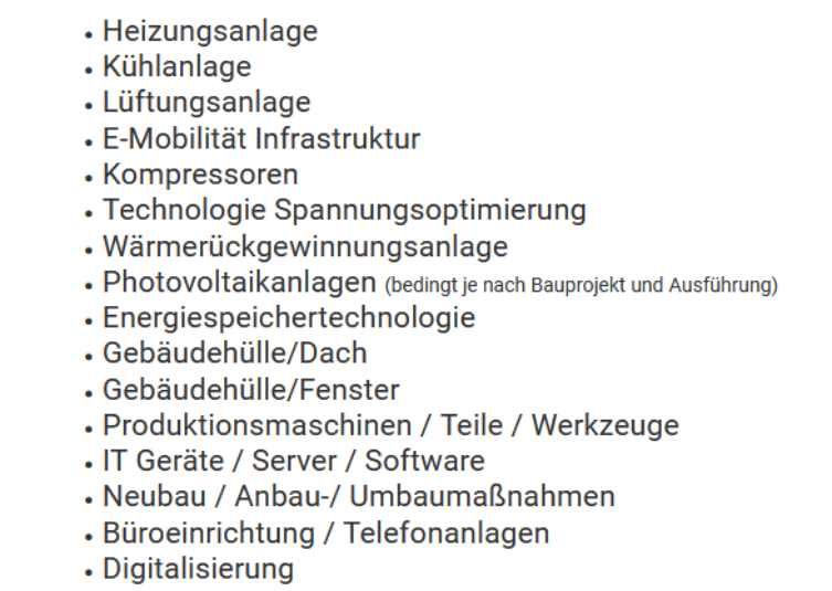 Sichern Sie sich jetzt Ihren Anspruch auf Fördermittel!•Bundesmittel für Energieeffizienz in der Wirtschaft•Energieberatung DIN EN 16247•Energetisches Sanierungskonzept DIN V 18599•Energetisches Neubaukonzept DIN V 18599•Bundesförderungen für effiziente Nichtwohngebäude